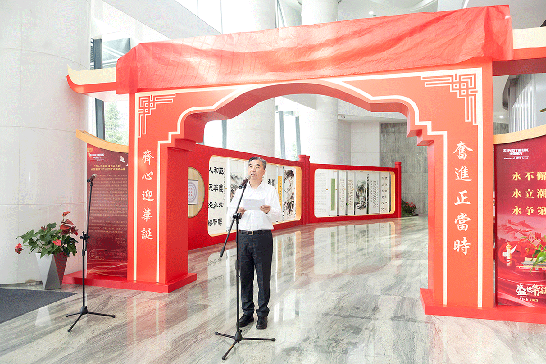 金秋九月,丹桂飘香。为隆重纪念中国人民抗日战争暨世界反法西斯战争胜利80周年,热烈庆祝中华人民共和国成立76周年,9月24日,“齐心迎华诞奋进正当时”中国重汽集团2025年职工书画展在科技大厦开展。山东重工集团党委副书记、董事、工会主席叶建军,中国重汽集团党委书记、董事长刘正涛出席活动并共同为书画展揭幕,中国重汽集团党委副书记、董事、工会主席蒋朋朋主持开幕式。